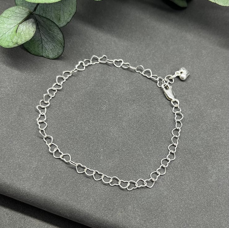 Gorgeous, very delicate heart link chain bracelet. Each wire heart measures 5 mm across.