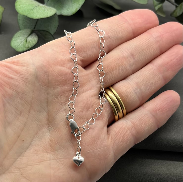 Gorgeous, very delicate heart link chain bracelet. Each wire heart measures 5 mm across.