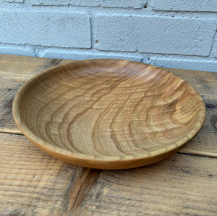Handmade on our woodturning lathe, this dish turned from Sweet Chestnut is ideal for snacks or a small salad. The dish is 22cm wide and 3.5cm high and has been finished with two coats of food safe danish oil.