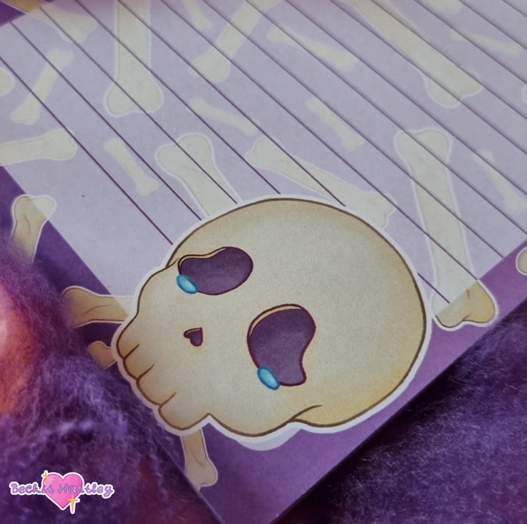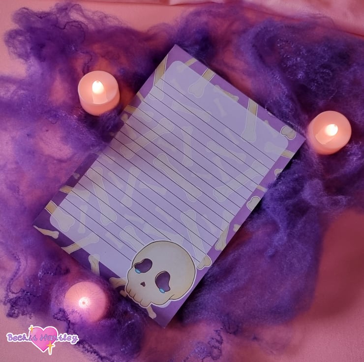 Featuring original crying skull and bone illustrations, this 50 page, lined A5 notepad works perfectly as writing paper for your penpal letters or just for everyday note taking.