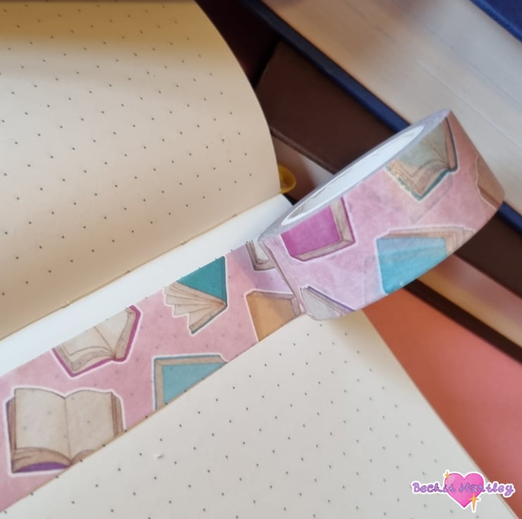 Featuring original illustrations of books, books, BOOKS, this 10m roll of 2cm width washi tape is a must have for journaling and stationery lovers.