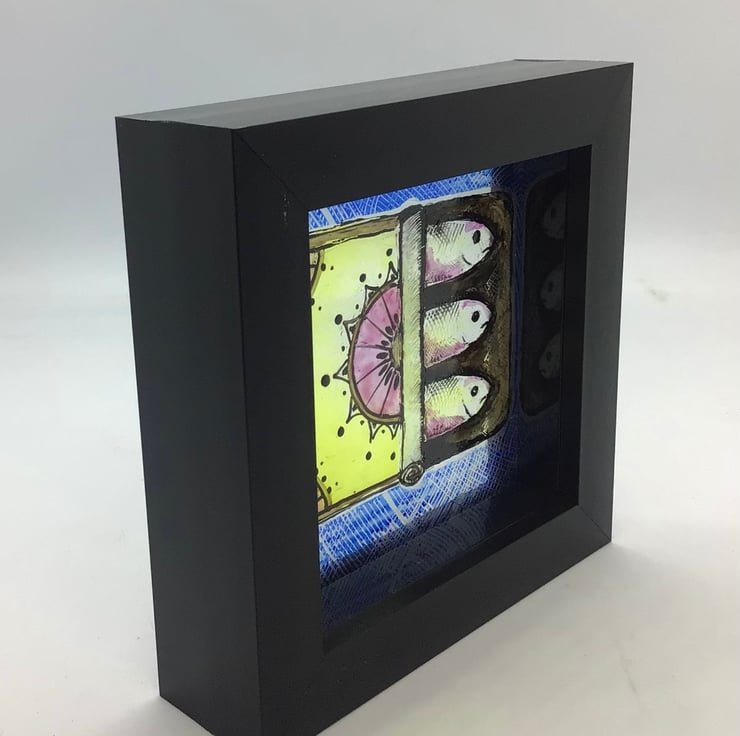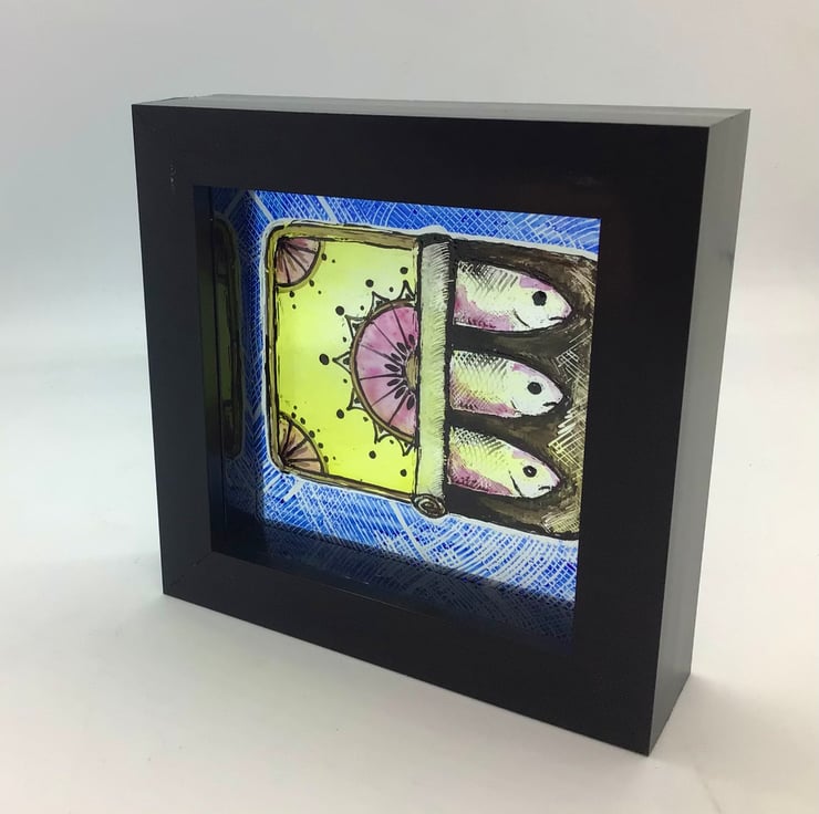 Hand painted stained glass. Created using historical kiln firing methods with silver stain and enamel. Unique one-off which will last forever. 10x10x3.5cm inc frame.
