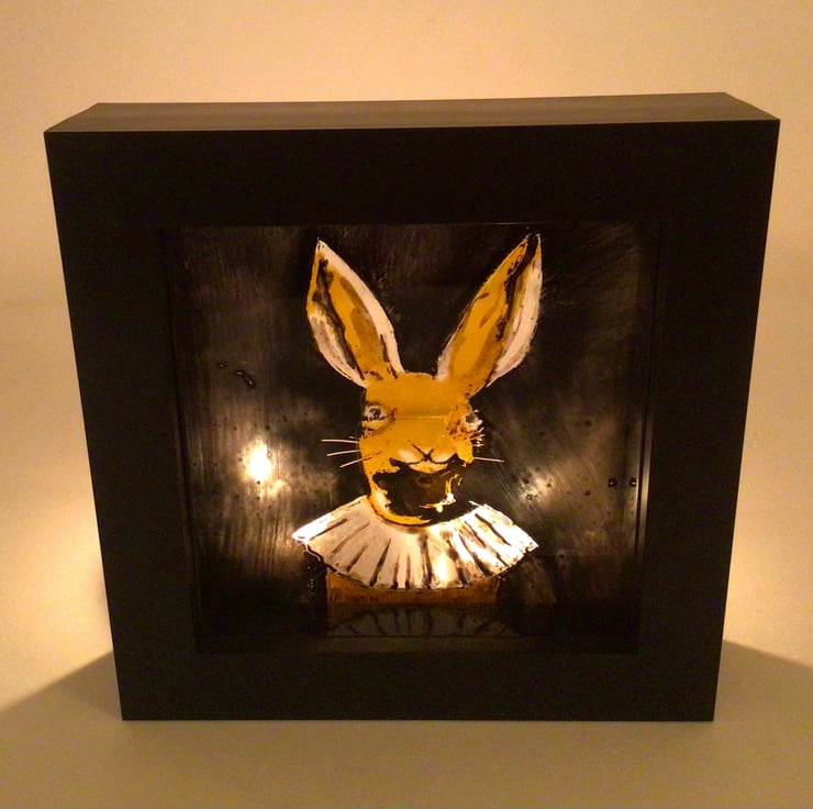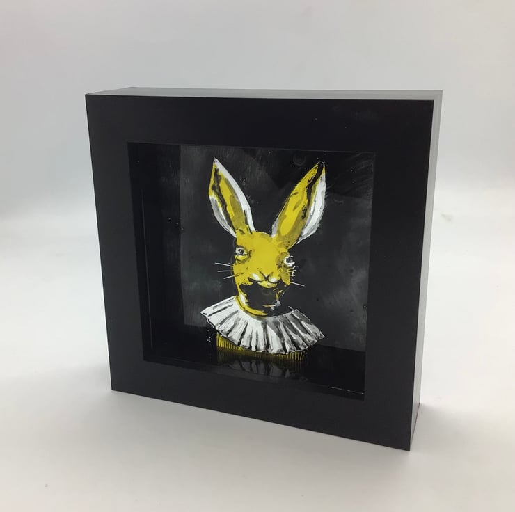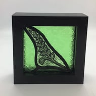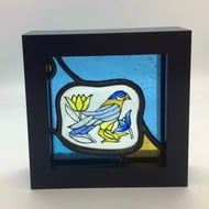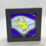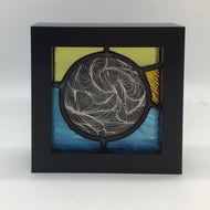 Hand painted stained glass. Created using historical kiln firing methods with silver stain and enamel. Unique one-off which will last forever. 10x10x3.5cm inc frame.