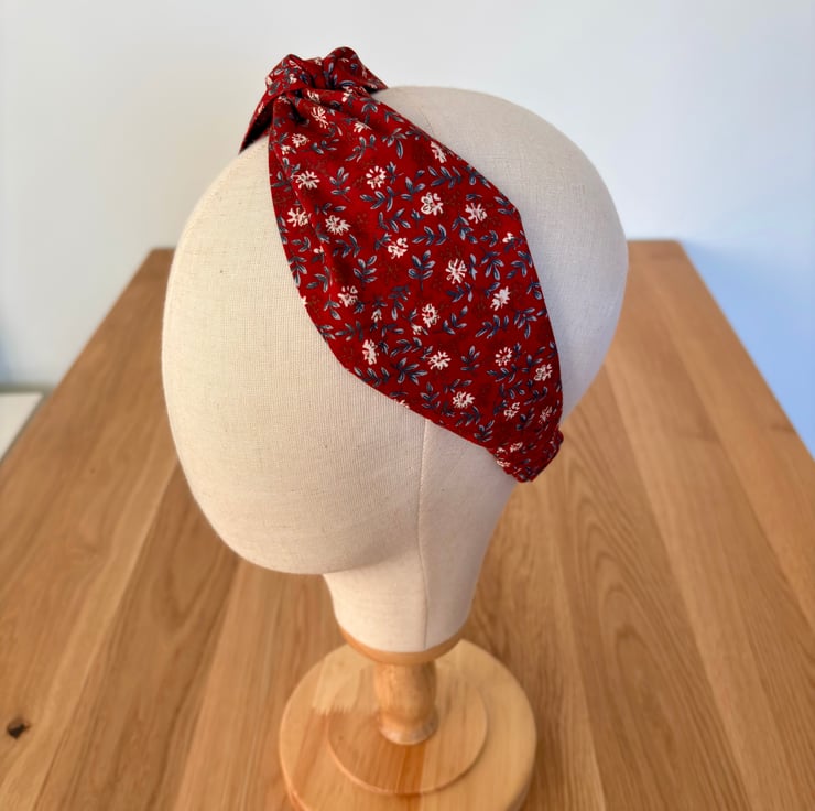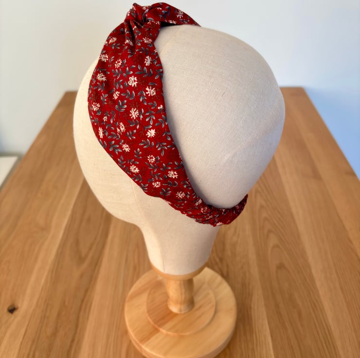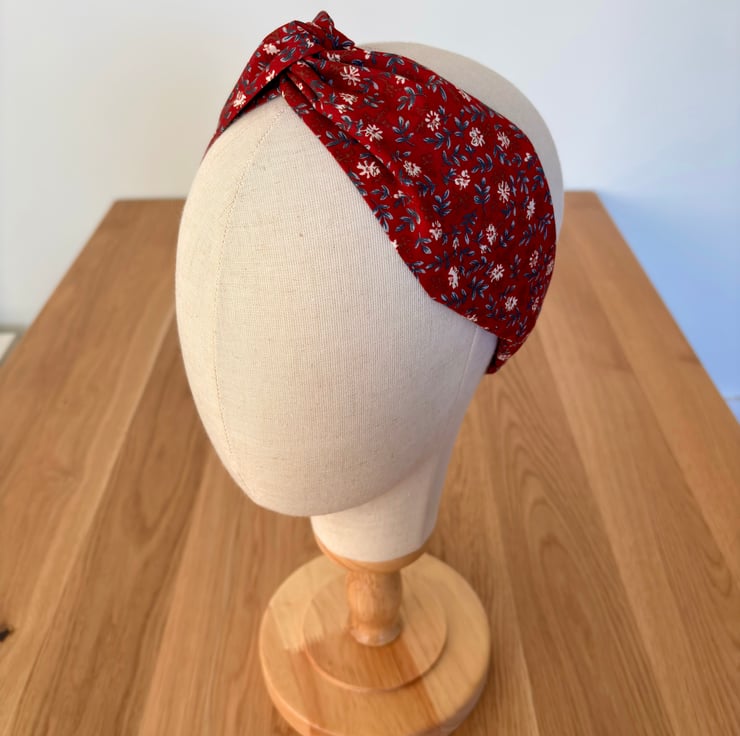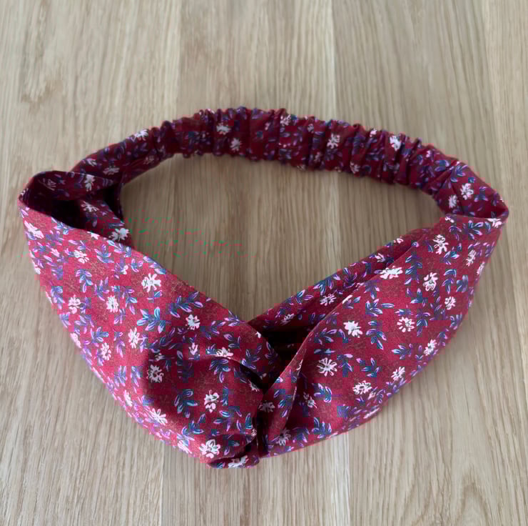 Cotton headband, twist knot style hairband in wine with delicate floral print