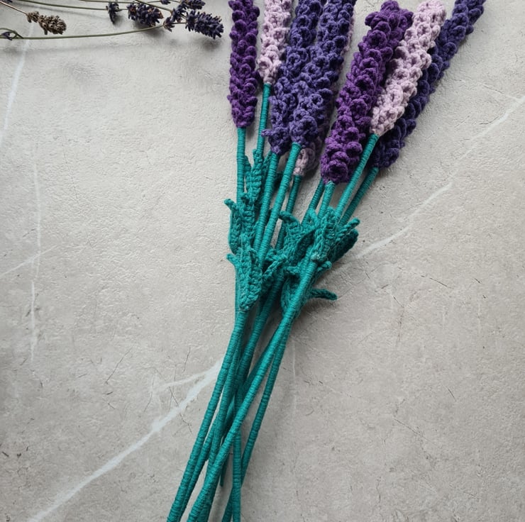 Add a touch of countryside charm to your space with this handcrafted crochet lavender. Each stem is carefully made by hand in calming shades of purple and lilac with fresh green stems and delicate leaves, these everlasting flowers capture the beauty of lavender without fading.