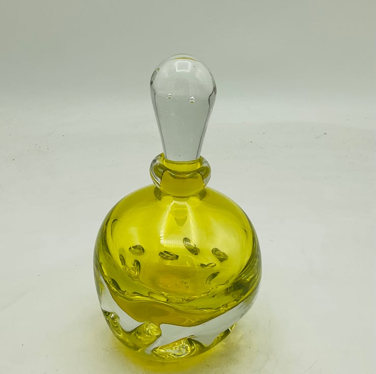 Sometimes it’s the simple things in life that are the best and the Tweak Bottle is a fine example of just that. It’s all about the glass...refraction and reflection. Intense colour against the solid clear base is ice like. Made using the traditional methods of hot glass in the old fashioned lead glass crystal these pieces are timeless. When you order let me know if you want the Cobalt Blue or Purple or Golden Yellow