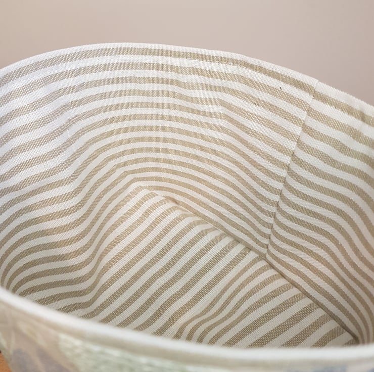 Both outer and lining fabrics are good quality cotton fabrics which have been interfaced so this keeps its shape. The lining fabric peeps over the top giving an interesting finish.