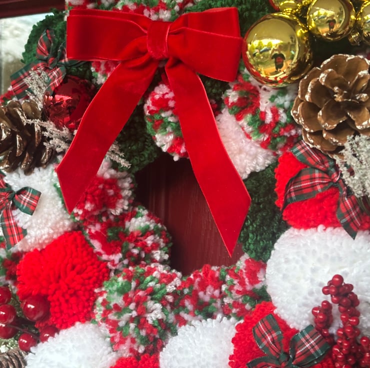 Handmade Pom Pom Christmas wreath with Christmas decor (type 1)