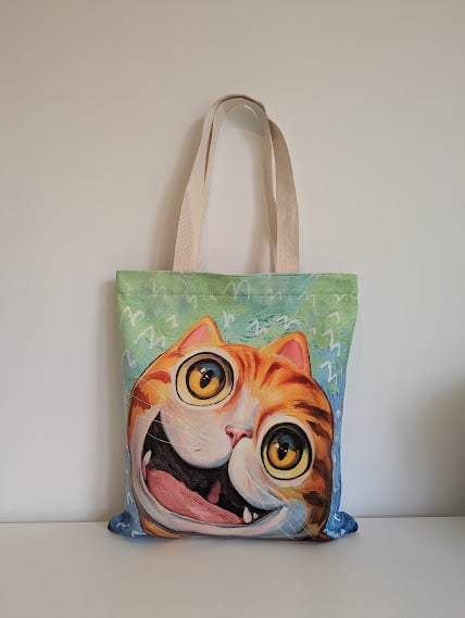 This tote bag isn't just a place to hold your belongings; it's a piece of portable happiness, designed to remind you to approach every errand, trip to the market, or walk in the park with total, unrestrained enthusiasm.
