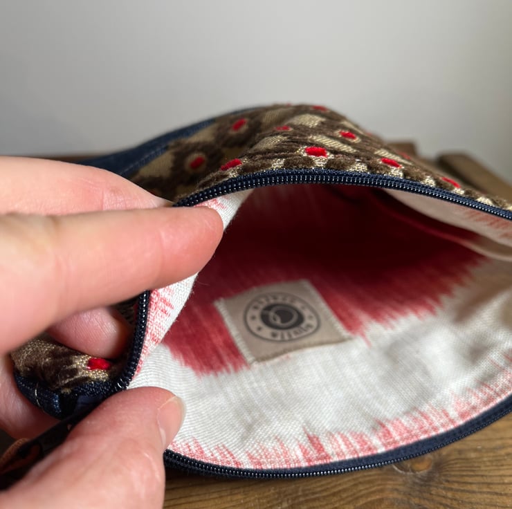 The pouch is fully lined with another sample swatch - a pink and cream linen. There is a layer of interfacing to give the pouch stability.