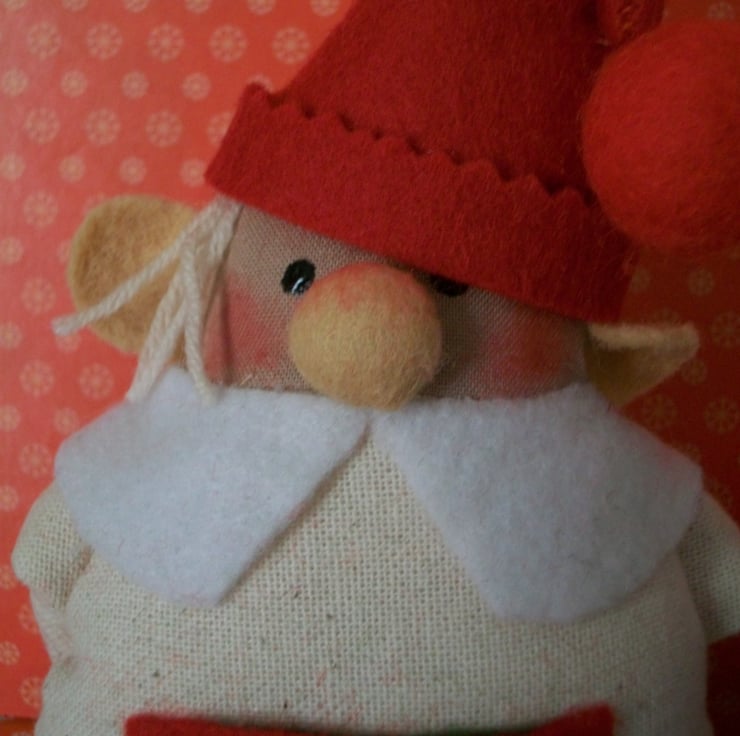 THREE RED POM-POMS FINISH OFF THIS JOLLY CHARACTER.
