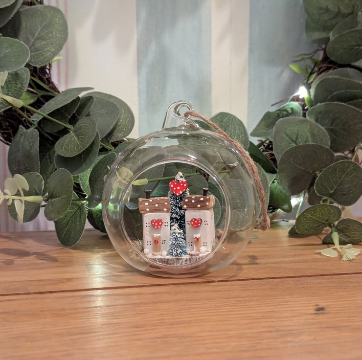 This glass Christmas decoration with cosy cottage scene inside is the perfect addition to your Christmas decorations this festive season.