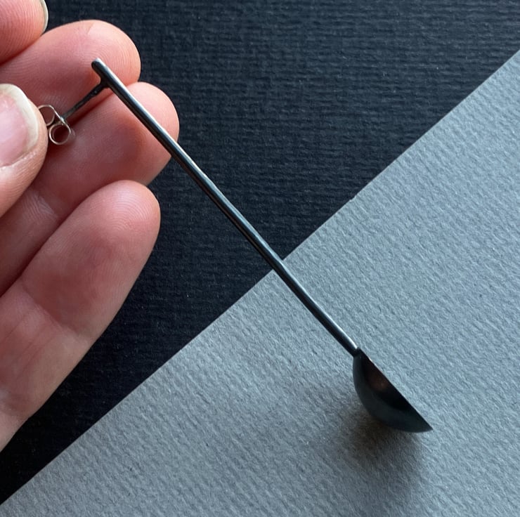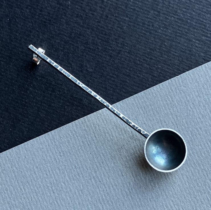 Oxidised silver SINGLE statement earring. Oxidised silver spoon earring with hammered detail. Hallmarked in Sheffield.