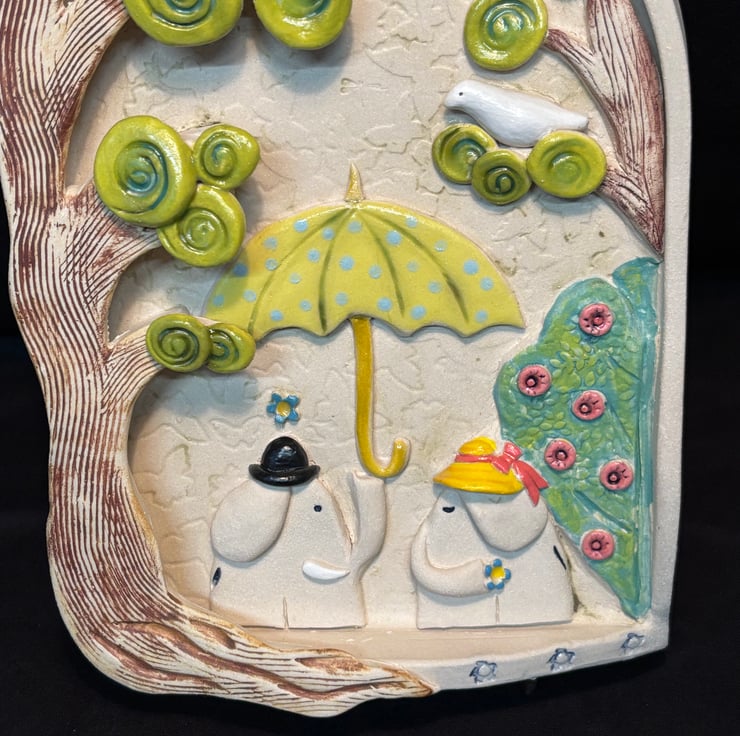 Highly detailed wall plaque with hanging wire. Recommended to hang on double hook or screws as elephants can be quite weighty!