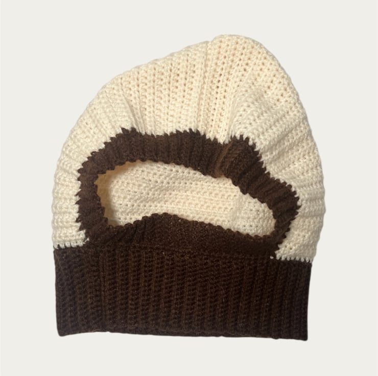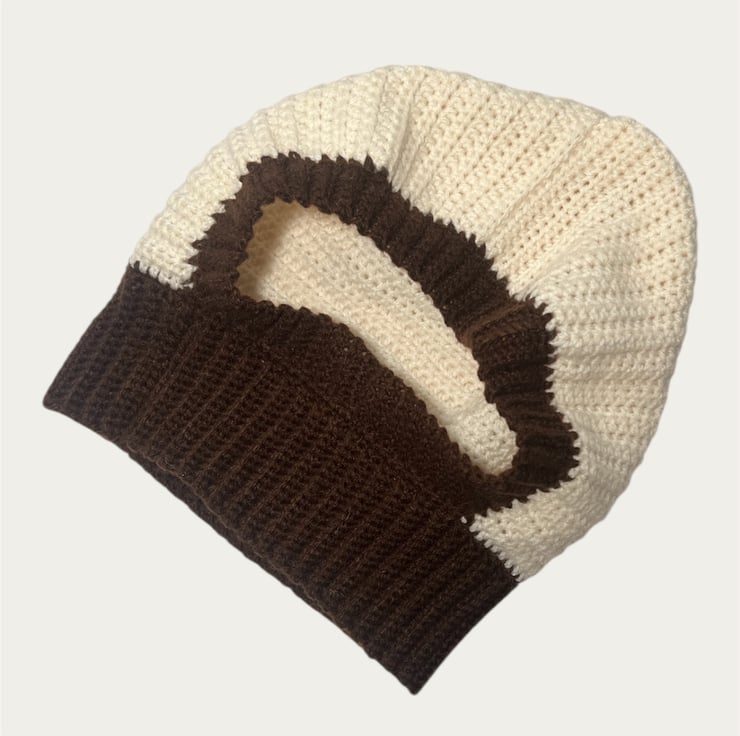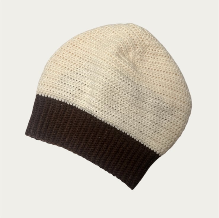 Multicoloured coffee brown around the ribbing and cream for main colour