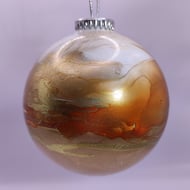 Small candle holder, 5cm x 5cm, hand painted glass depicting a robin in a holly tree