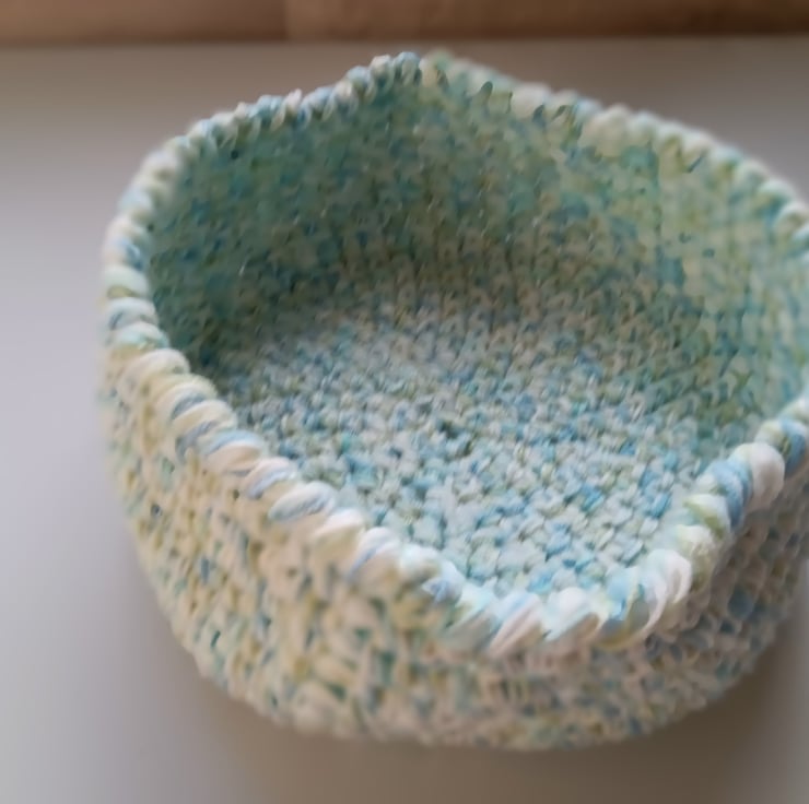 NEW SHOP! I love crocheting and creating beautiful and practical pieces and sourcing good quality yarns. This basket is made from a luxury variegated yarm. I have them in my bedroom to hold toiletries, makeup and trinkets, in my home office to hold pens and stationery and in my kitchen to hold all the bits and bobs that gather there. Enjoy unique work by Handmade by Joy - browse my shop for more, new items added regularly! BONUS - free postage!