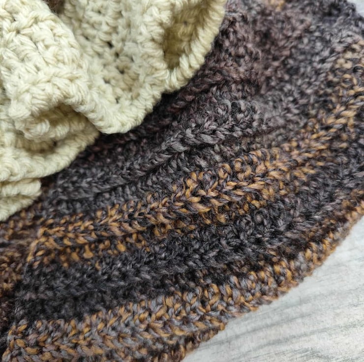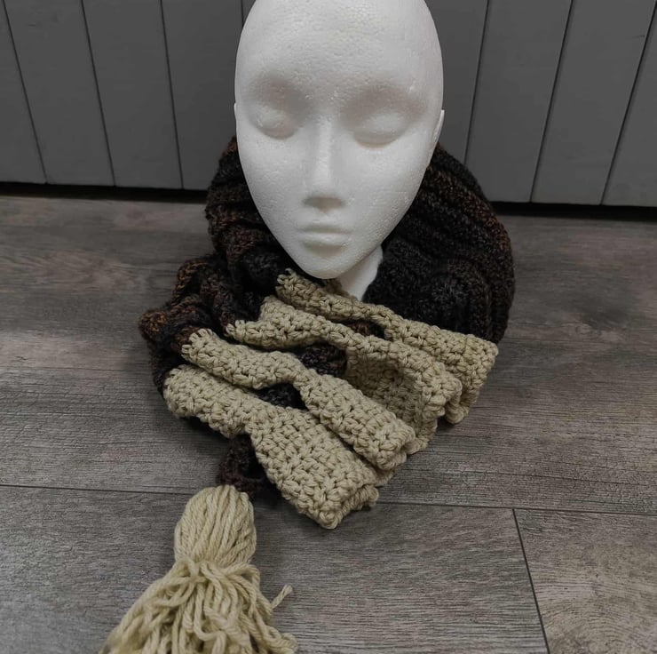 Made using 100% acrylic yarn in gorgeous shades of browns finished with parchment colour to add contrast.