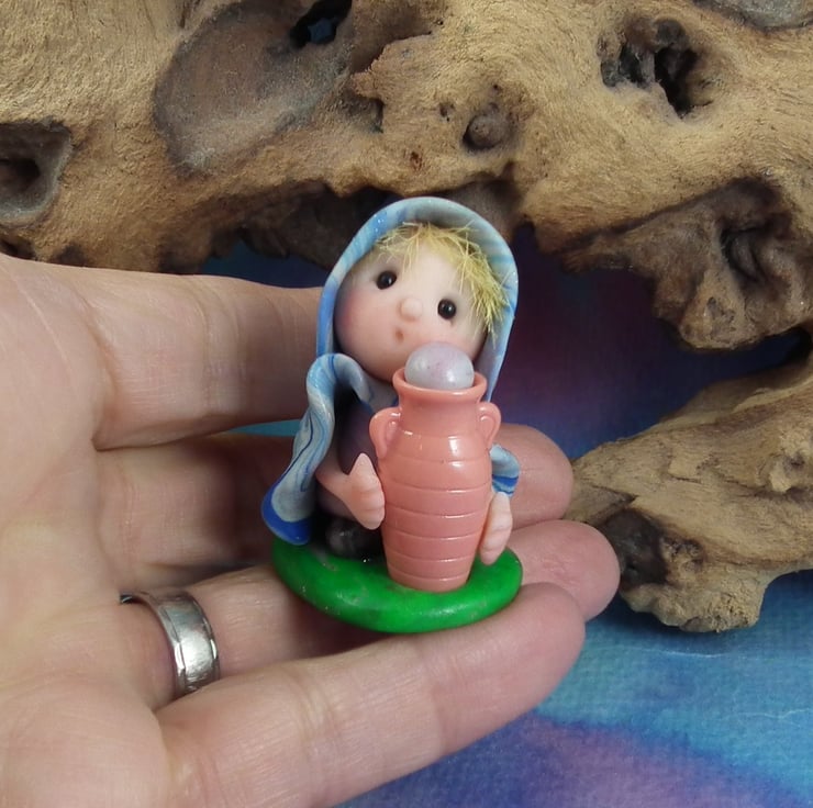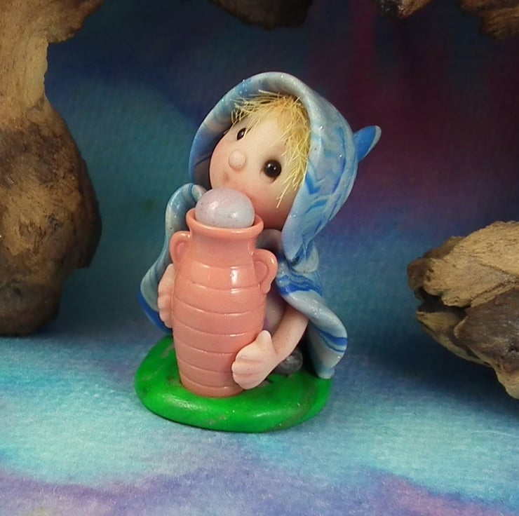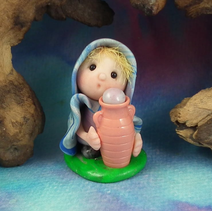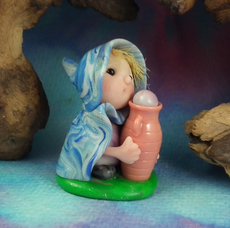 This is a 'one of a kind' creation having been entirely handmade without the use of moulds here at my studio on the Sussex Coast. Modelled with artist blend polymers, blushed before sealing with lacquer, Dymphi has sparkling black onyx eyes and variegated robes. Dymphi the Infirmary Gnome is just one and a half inches tall.