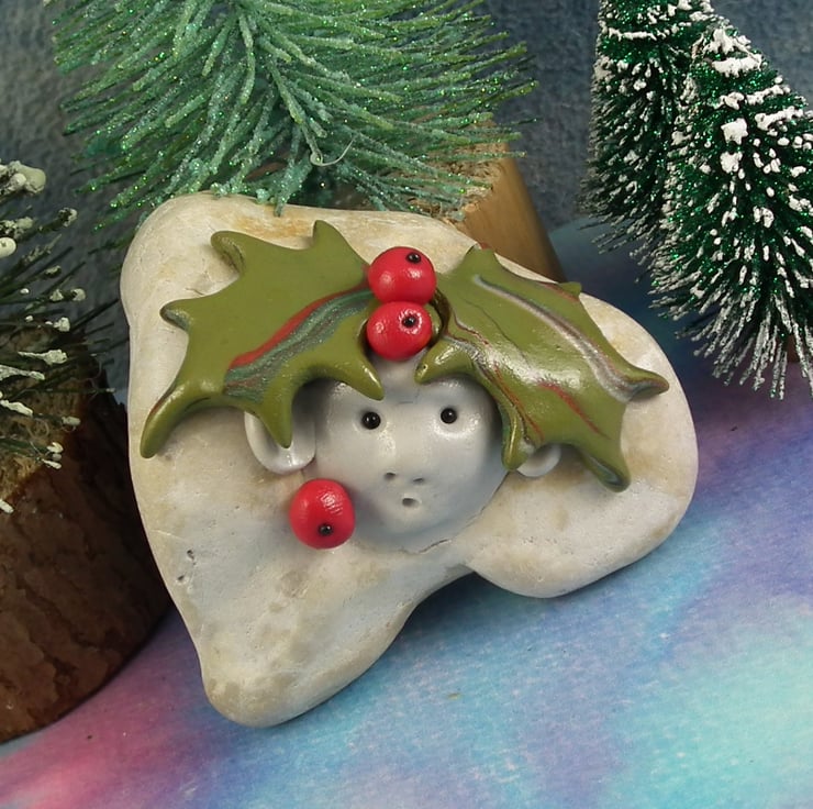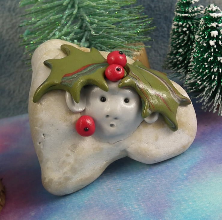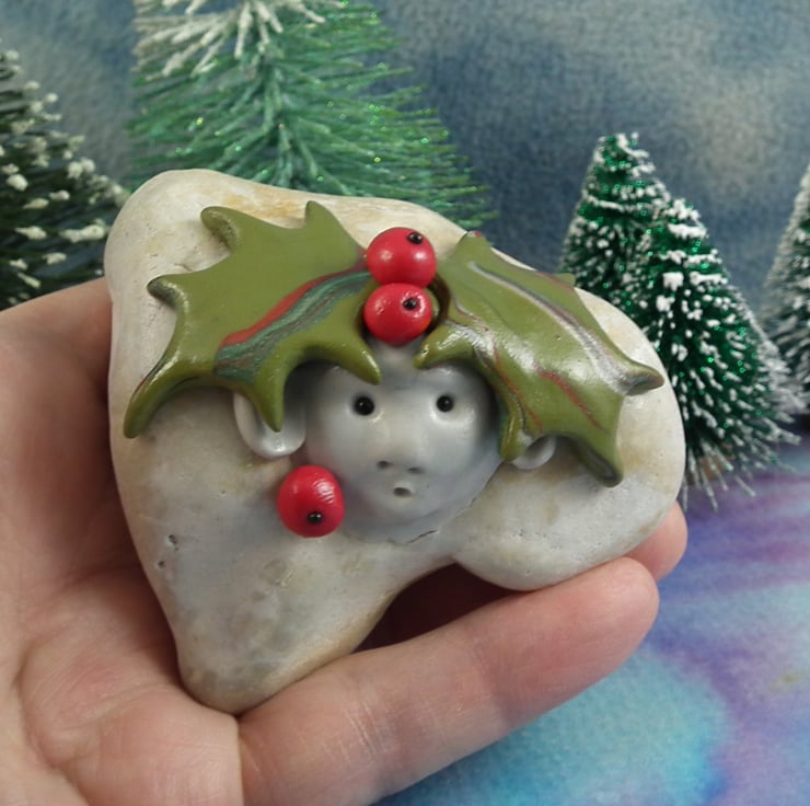 This is a 'one of a kind' creation having been entirely handmade without the use of moulds here at my studio on the Sussex Coast. Walter has been created with blended polymers on a natural stone base, he is not removable. Walter has sparkling black onyx eyes. Walter the Rock Gnome is presented on a three inch rock.