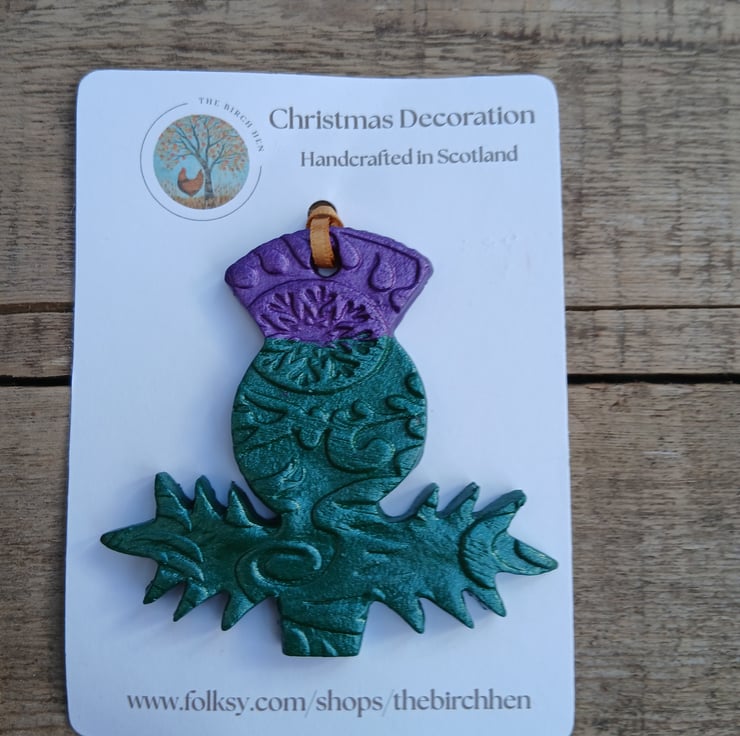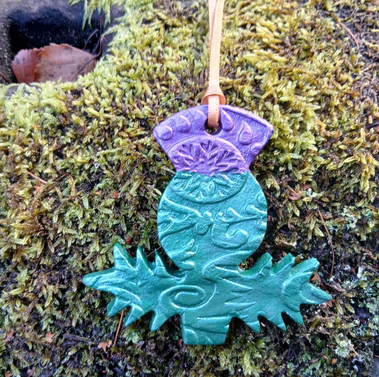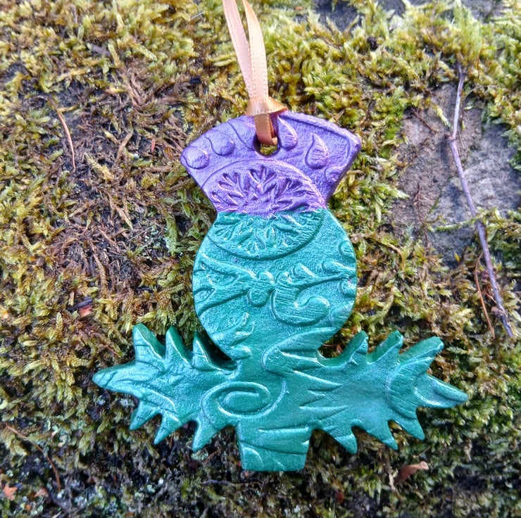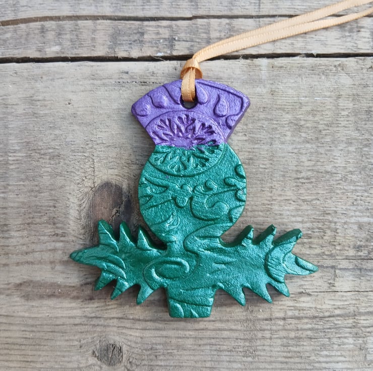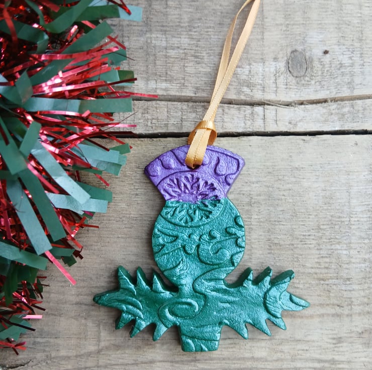 Add a wee touch of Scotland to your Christmas tree with our handcrafted, hand-painted Scottish thistle, complete with gold hanging ribbon.