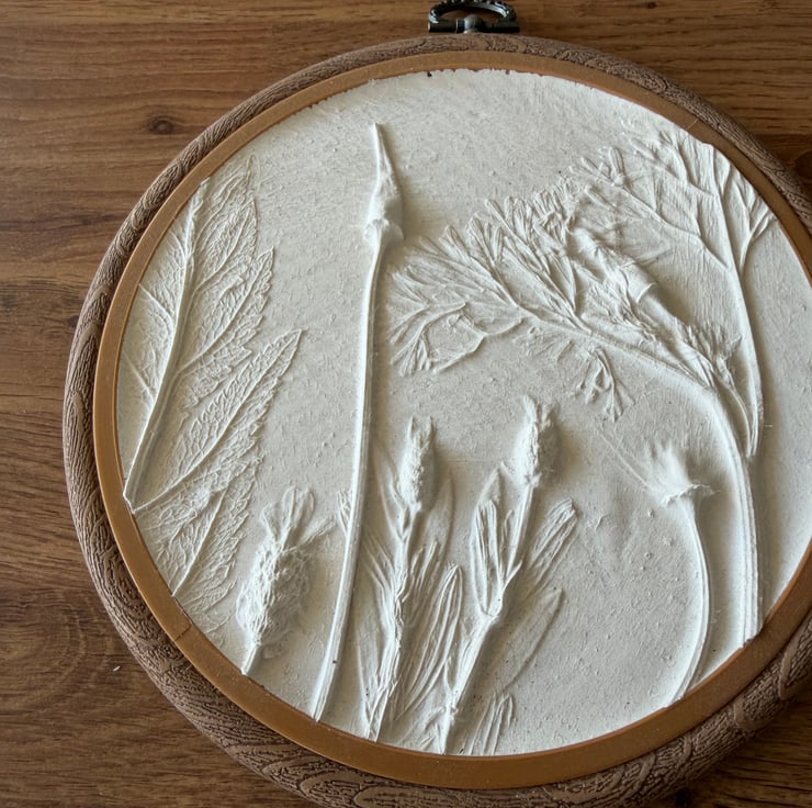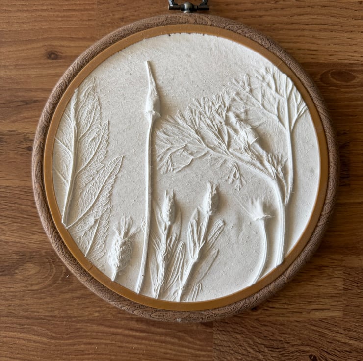 Bring the calming beauty of nature into your home with this handcrafted botanical plaster casting, featuring delicate impressions of poppies and lavender. Each flower has been carefully pressed into clay before being cast in plaster of Paris, capturing every tiny detail—from the curve of each petal to the graceful texture of the stems.