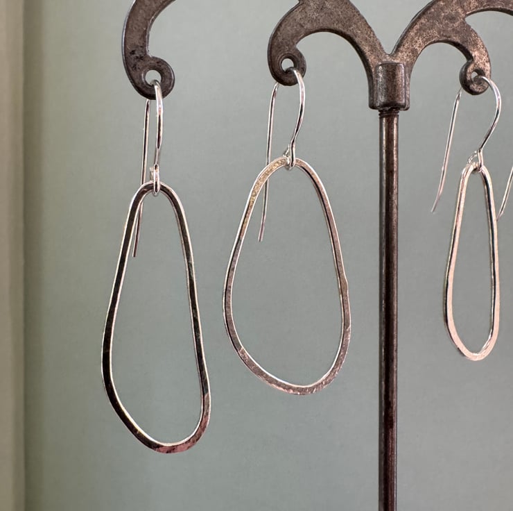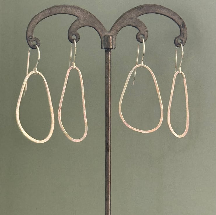 I make each earring then match them up to create perfectly imperfect pairs - each one a little different from the next for that little bit of individuality. Every pair is made up of one pebble shaped earring and one elongated pebble shape, which complement each other.