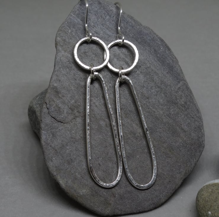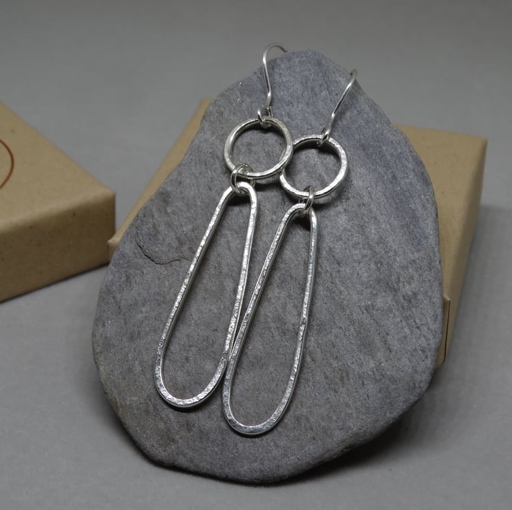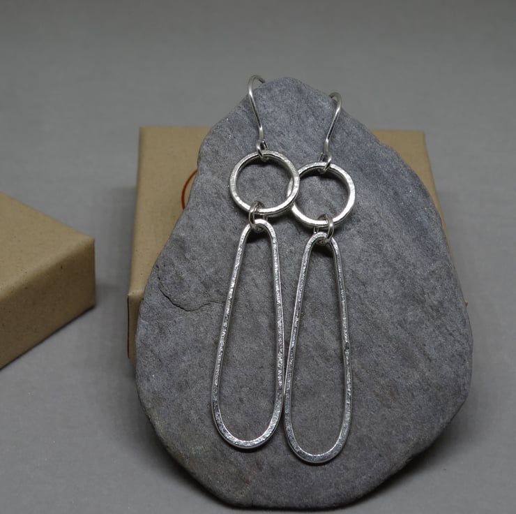 Silver drop earrings - organic shaped long lightweight - recycled silver