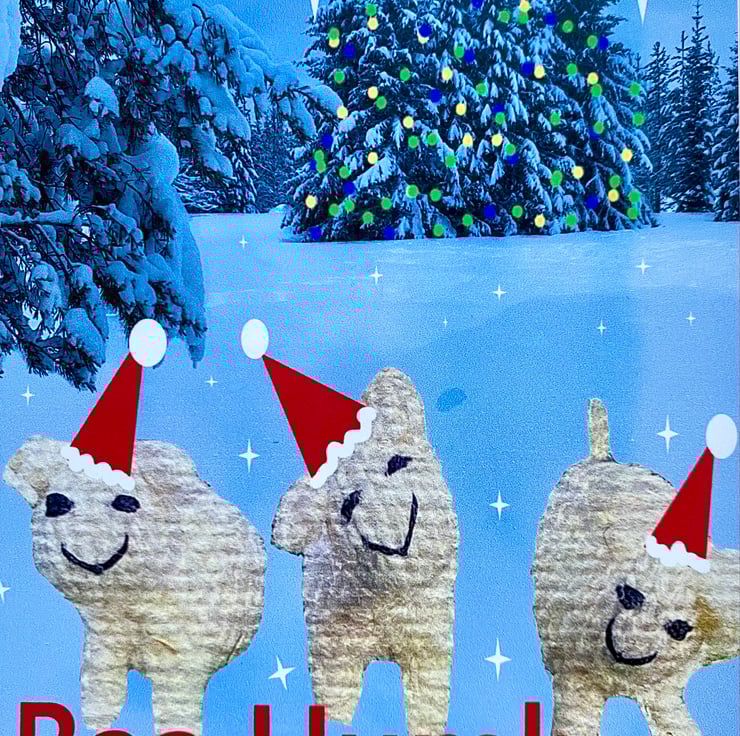 My little knitted sheep have been transported to a snowy landscape. They look rather pleased to be playing in the snow.