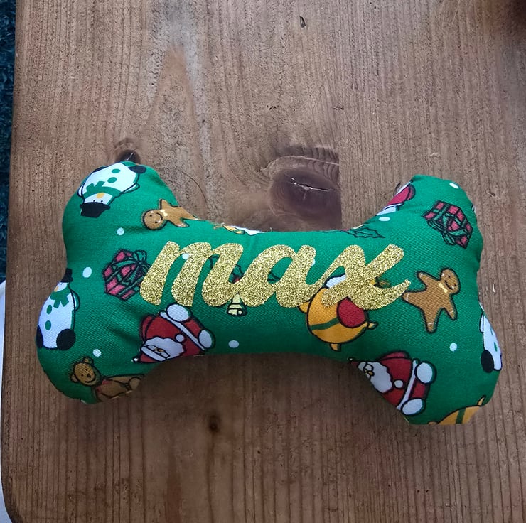 Here is a great custom made xmas dog bone toy can be personalised with your best friends name please advise what name you require