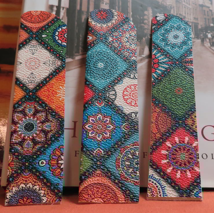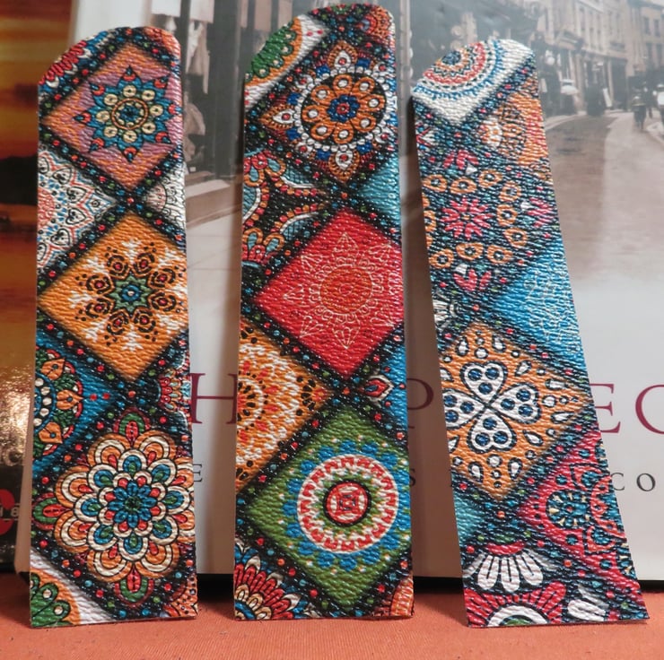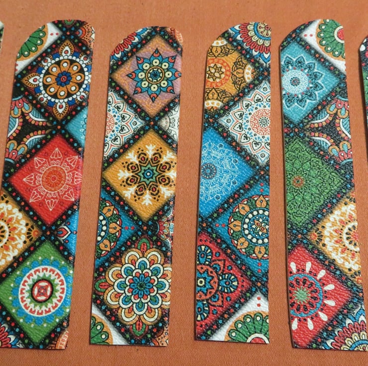 Fancy bookmarks made from faux Leather (plastic) vegan friendly.