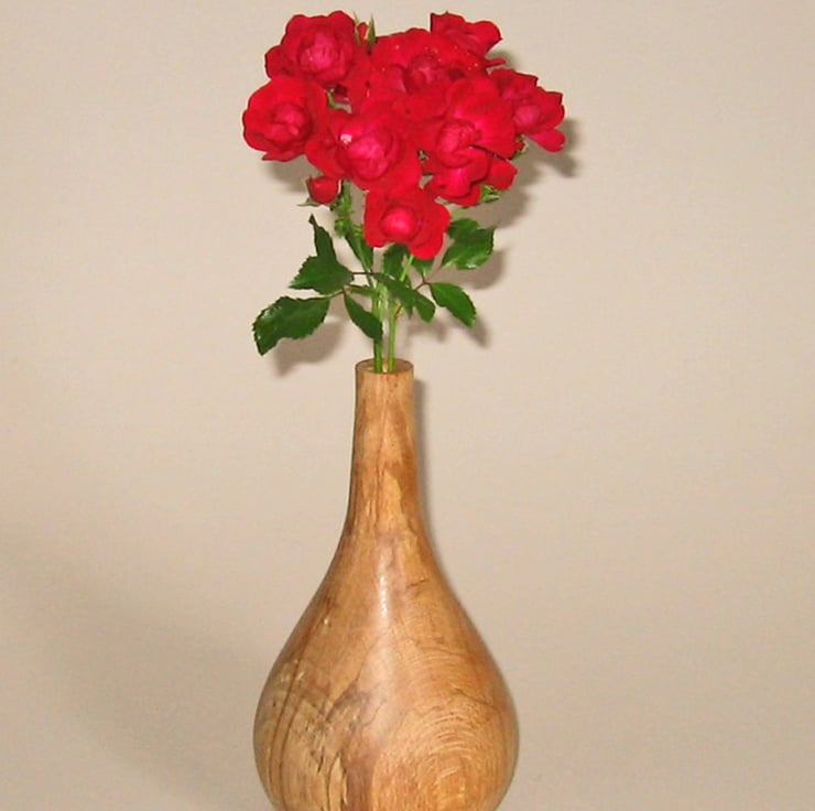 An elegant vase turned in spalted beech. The shape strives to enhance the finely figured wood. The vase has a durable wax finish.