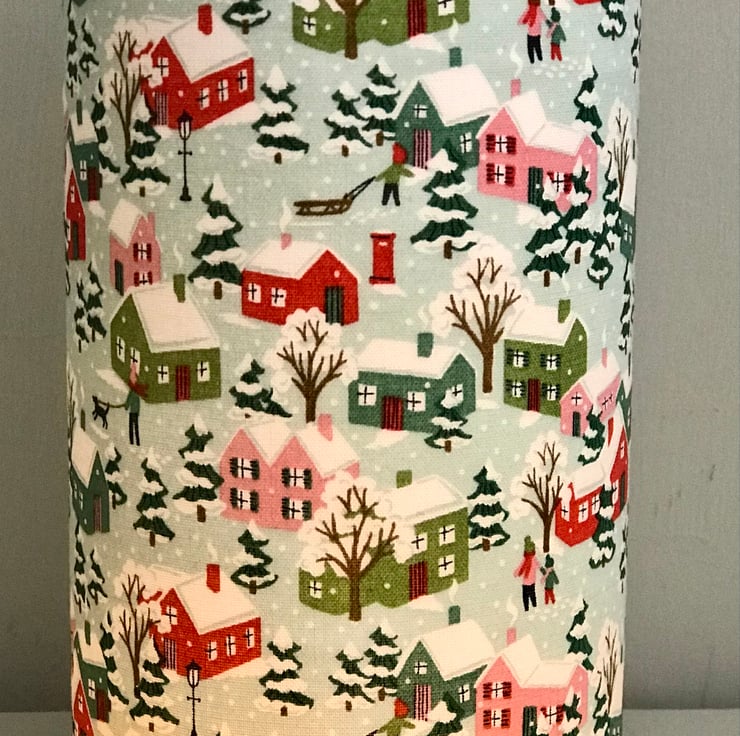 Such a delightful Hand painted Snowy Winter Wonderland village with charming snow- covered houses, hiding a multitude of quirky details within. Look beyond the snow covered trees to spot people walking their dogs, gliding sledges, vintage lamp posts and even tiny post - boxes.