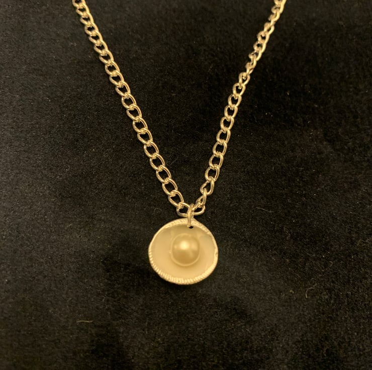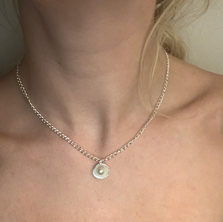Silver plated necklace. I recently went travelling to Australia and collected some shells to make jewellery with. It also contains bead pearl within the shell. Homemade necklace by myself.