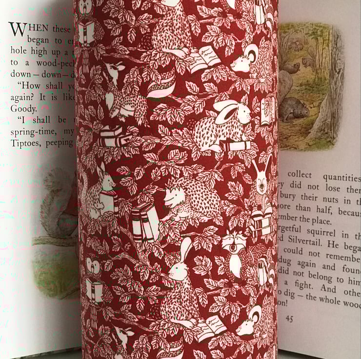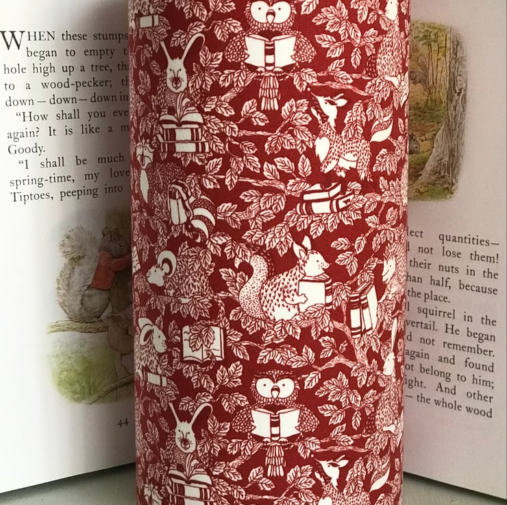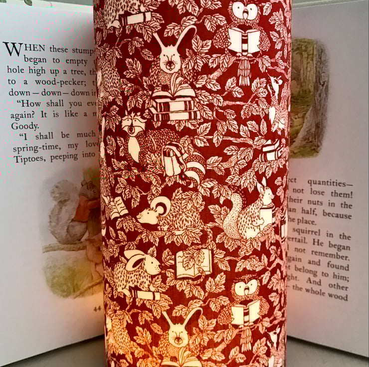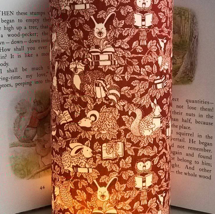 Such a delightful Liberty print featuring woodland animals in a Woodland Library, Night light looks simply lovely lit up.