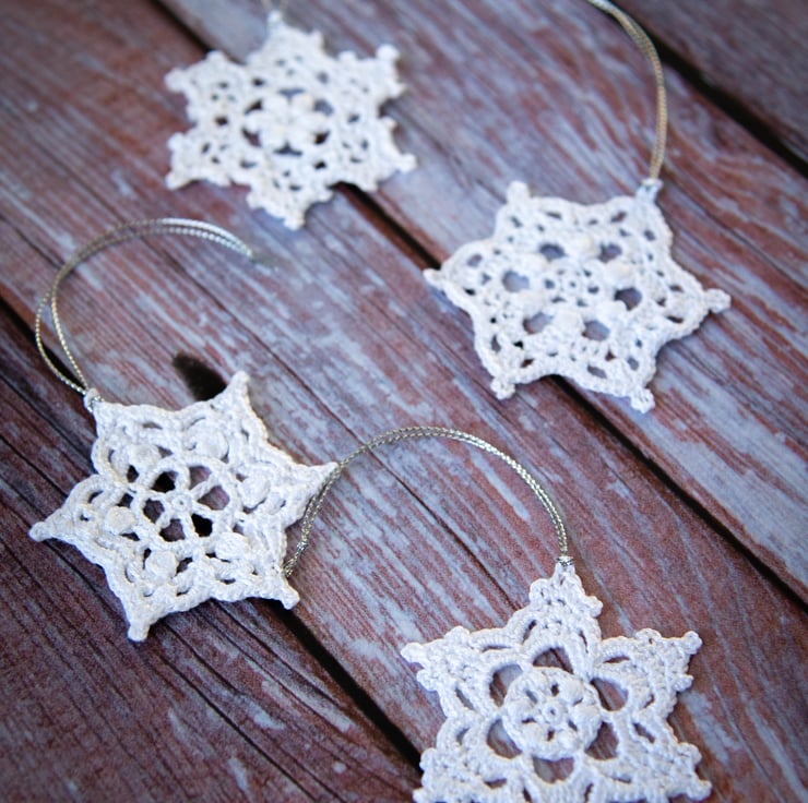 Handmade Crochet Lace Snowflake Ornament Set