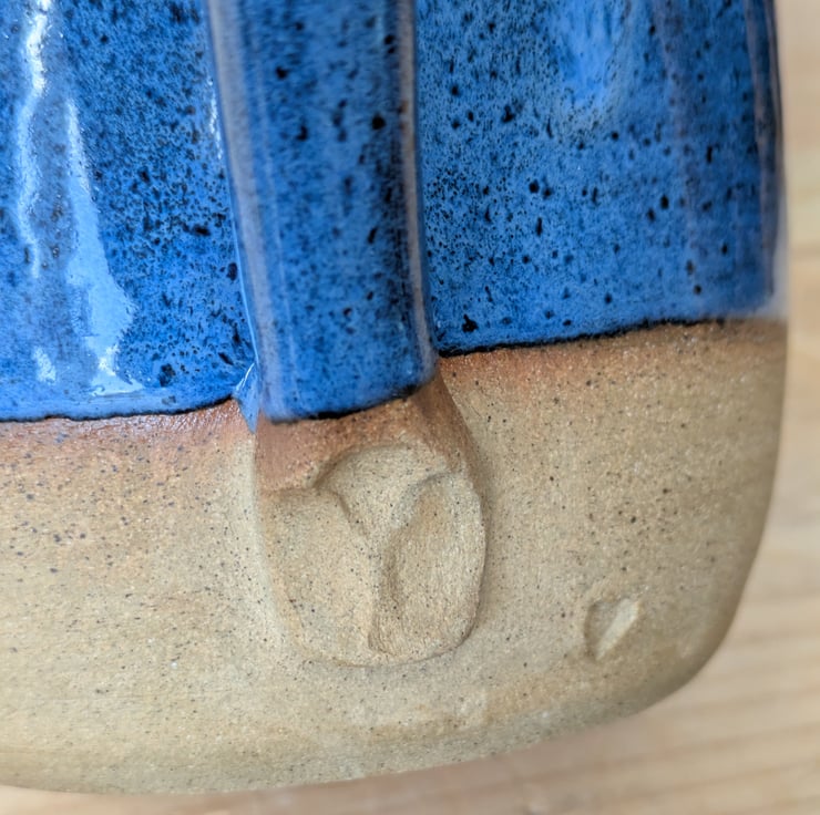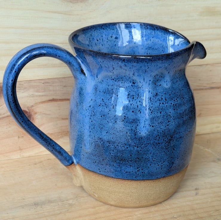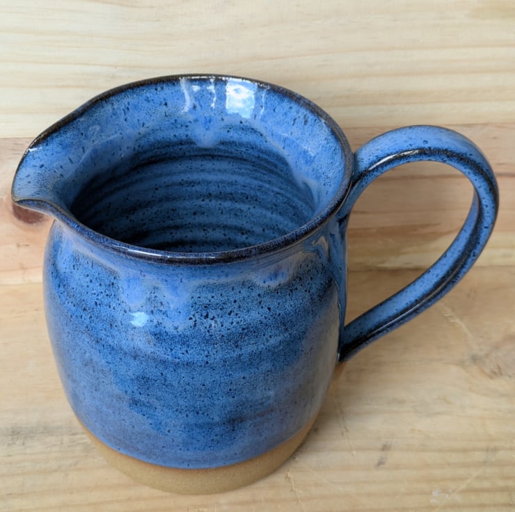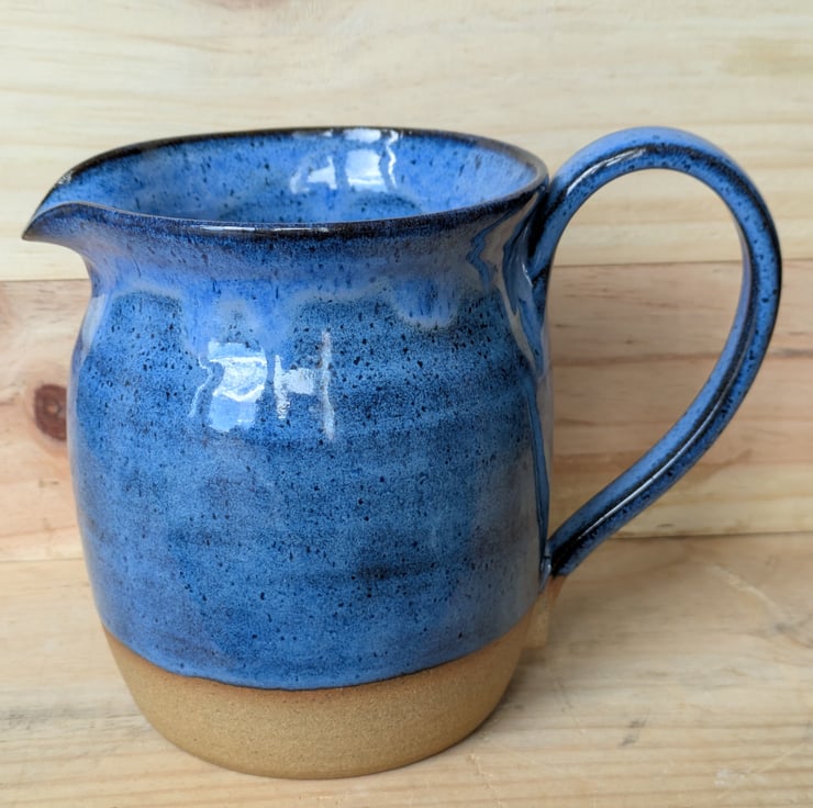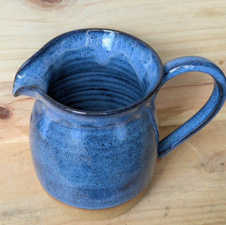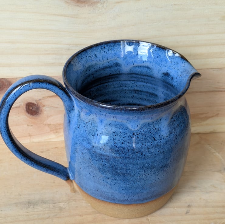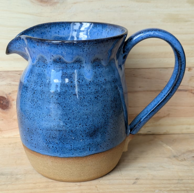 Larger wavy blues jugs...great as a water jug, for custard or even Pimms! Have used a toasted clay which gives it a lovely warm colour after firing. I like leaving a little of the jug unglazed to give you a feel of the clay. Price is per jug.