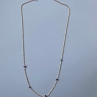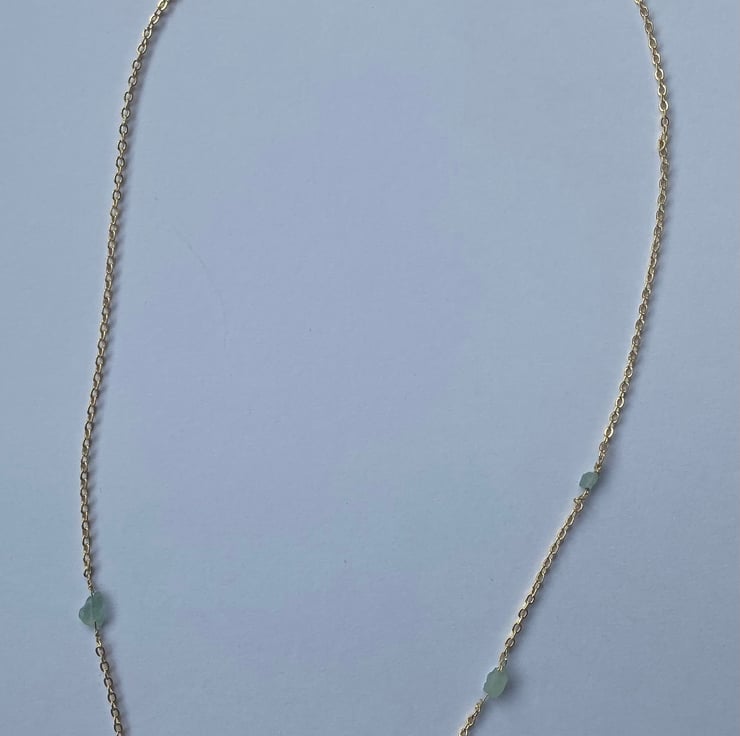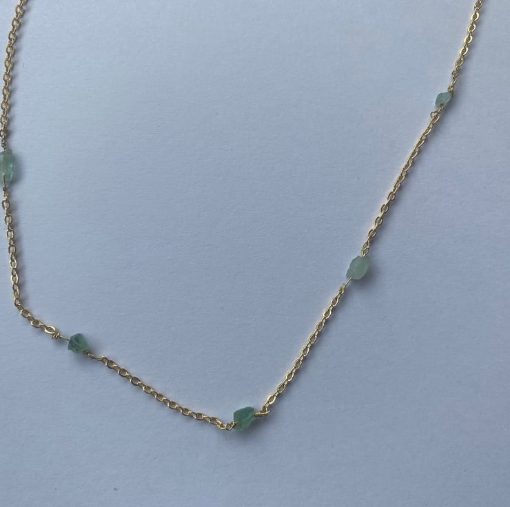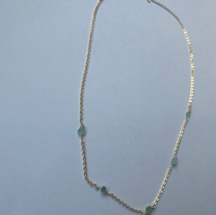 Crafted on a 14-inch 24Kt gold-plated cable chain, these dainty natural raw Colombian emeralds bring a touch of earthy elegance and gentle green glow to your everyday style.