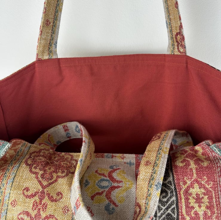 It is fully lined in a complementary cotton fabric and the corners are boxed to give it shape.
