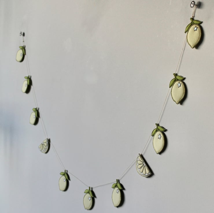 Measuring approximately 130cm in length, with the lemons measuring approximately 6cm by 5cm and the lemon slices approximately 6cm by 3cm.