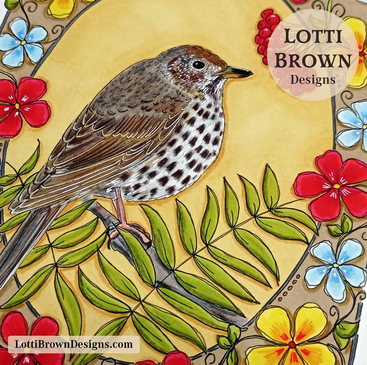 The song thrush is a bird of joy and melody - known for its enchanting, echoing calls - and this detailed artwork was created to honour that lyrical spirit. The repeating phrases of the song thrush feel like part of the soundtrack of woodland edges and garden evenings. This illustration was created in coloured pencils and pens, layering warm browns and soft markings to capture the character of this much-loved bird. Hand-drawn in my cottage in Yorkshire, inspired by the thrushes that sing from the hedgerows of the nearby fields.
