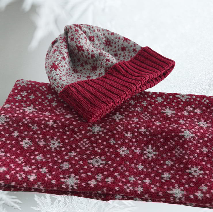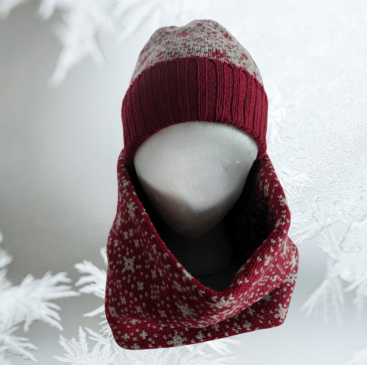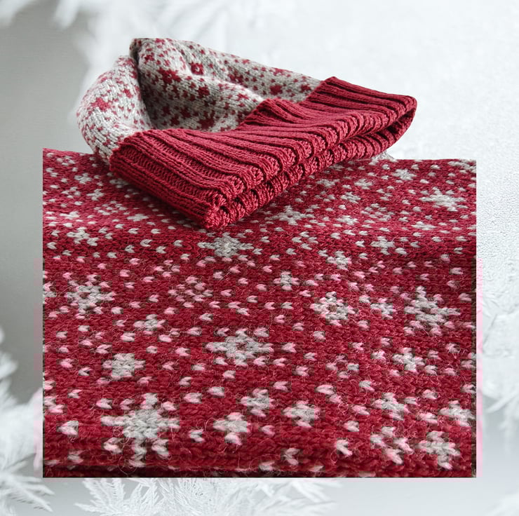 The unisex Snowflakes cowl / snood is knitted with 100% British Merino Wool. Great for the outdoors, walking or skiing, or, just meandering around town. It's a double layer to create structure and to trap the air, keeping you warm and stylish.