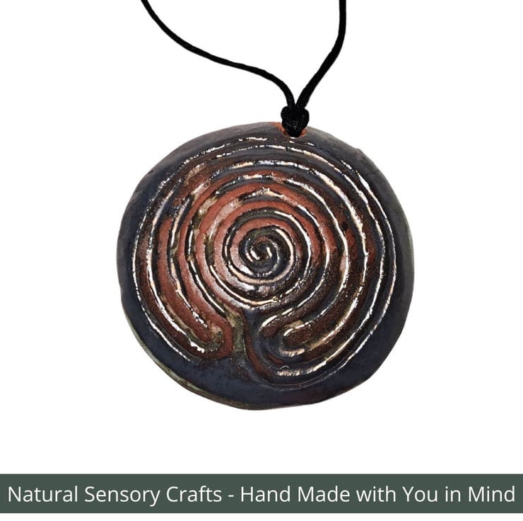A ceramic labyrinth pendant can be a great ‘green’ alternative to portable plastic sensory and fidget toys/tools.