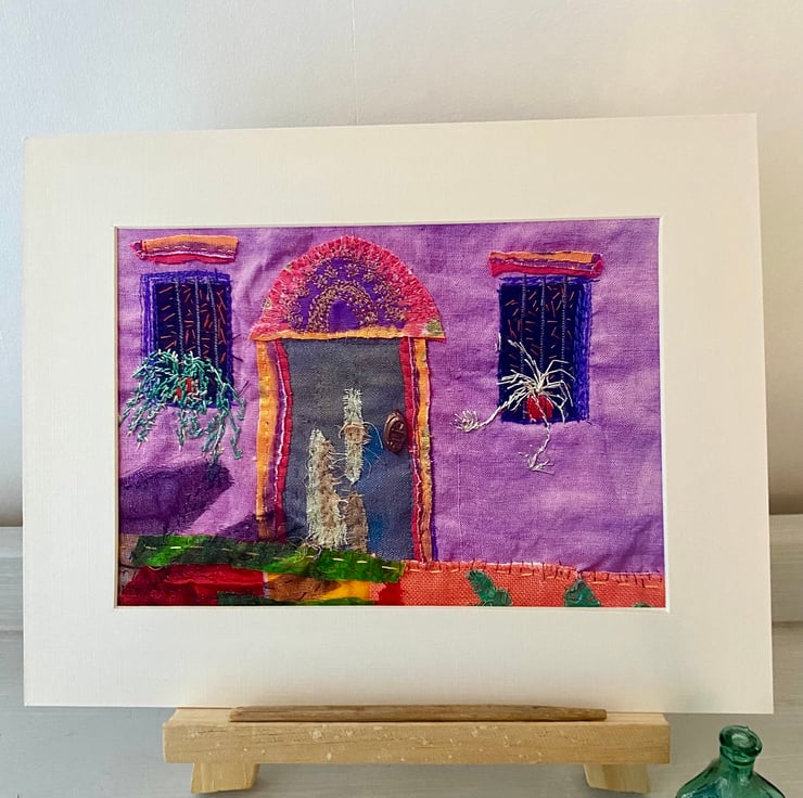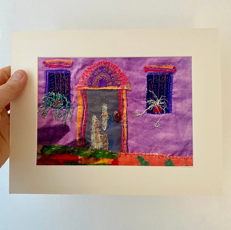 This is a print, of my original textile art, inspired by the streets if Buenos Airies. Brightly painted, traditional houses, nestle among the high rises.