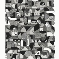 The poster is a professional digital print of an original linocut/screenprint which has now sold out. It is printed on high quality 160g cream paper, hand-titled and signed.