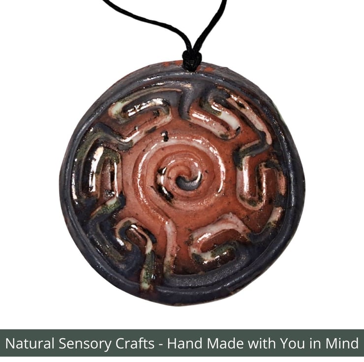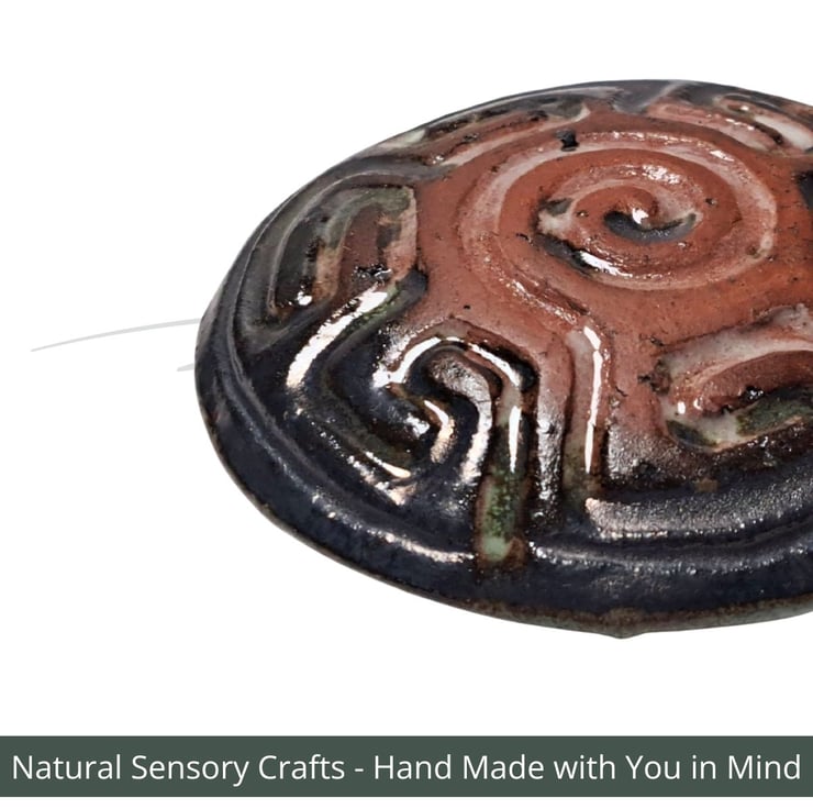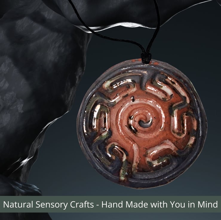 A ceramic labyrinth pendant can be a great ‘green’ alternative to portable plastic sensory and fidget toys/tools.