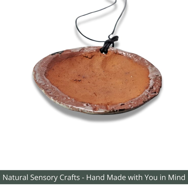 The concave reverse side of the pendant is purposely left porous to apply drops of your favourite essential oil. The curved design of the labyrinth will keep oils away from your closing