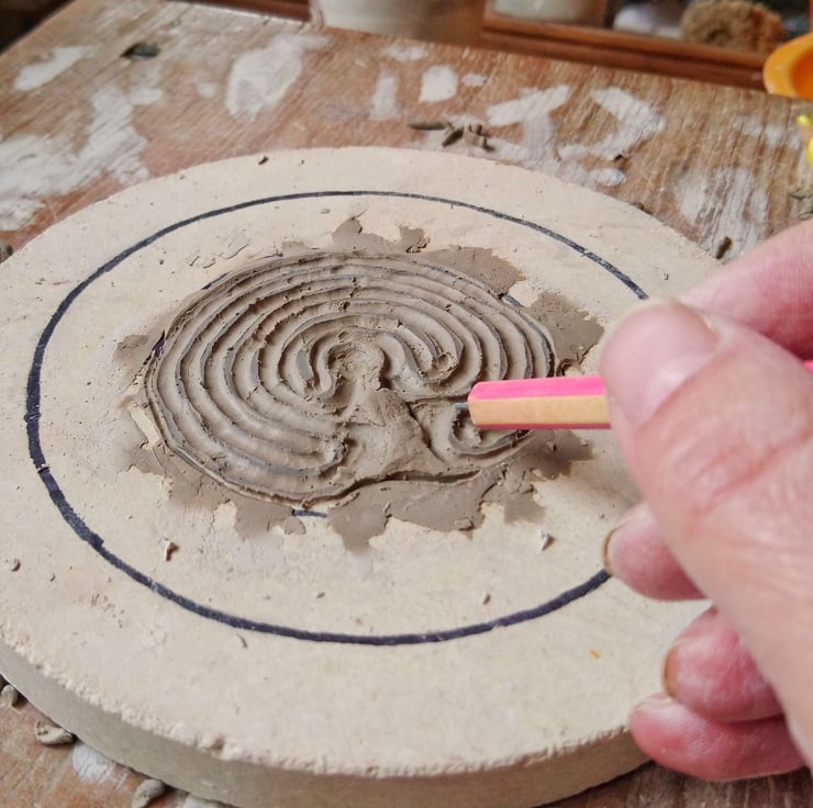 Every labyrinth pendant is lovingly created by hand using potters' clay and finished with a pottery glaze at temperatures ranging from 1065°C up to as high as 1260°C, making the labyrinth water and wash-proof.