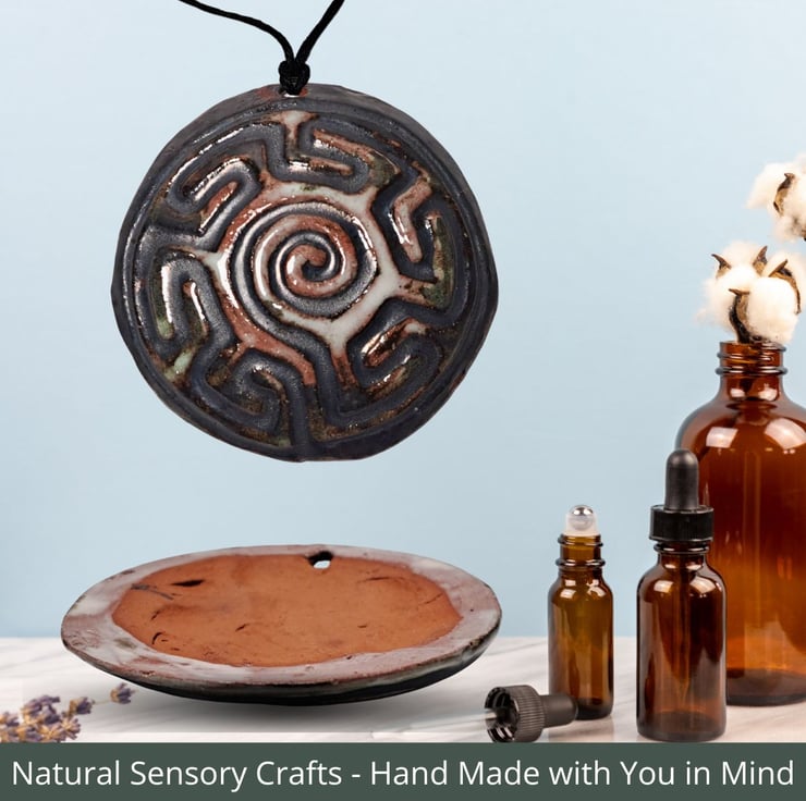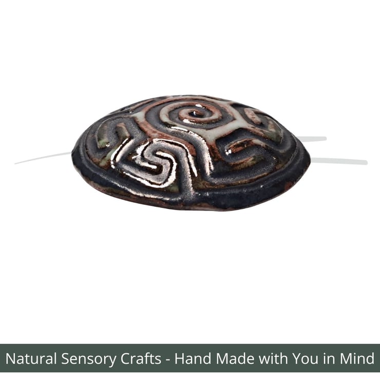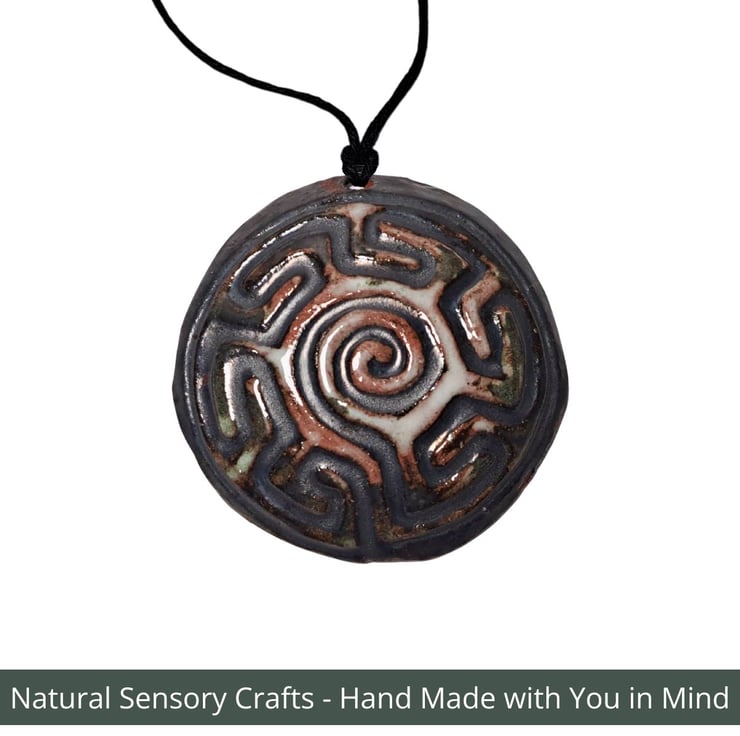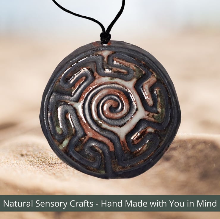 A ceramic labyrinth pendant can be a great ‘green’ alternative to portable plastic sensory and fidget toys/tools.