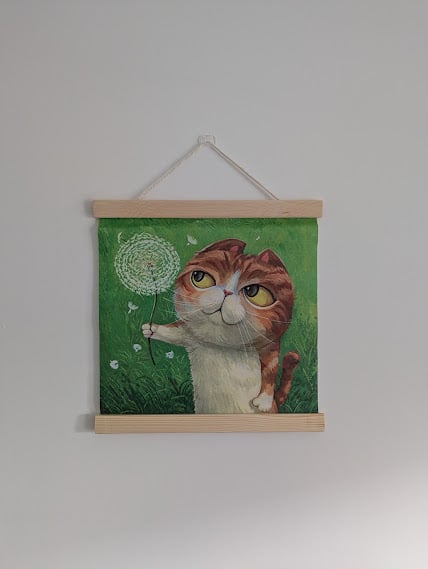 This artwork was inspired by the simple, beautiful moment of making a wish. We imagined a curious and soulful cat encountering a fluffy dandelion—the ultimate symbol of hope, childhood wonder, and the fleeting nature of time.